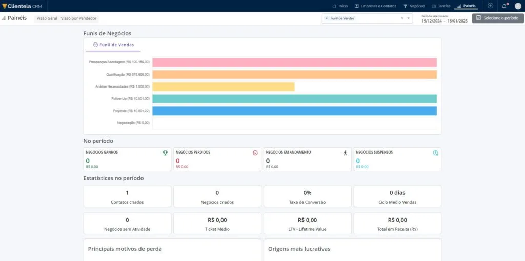 Visão completa do pipeline de vendas